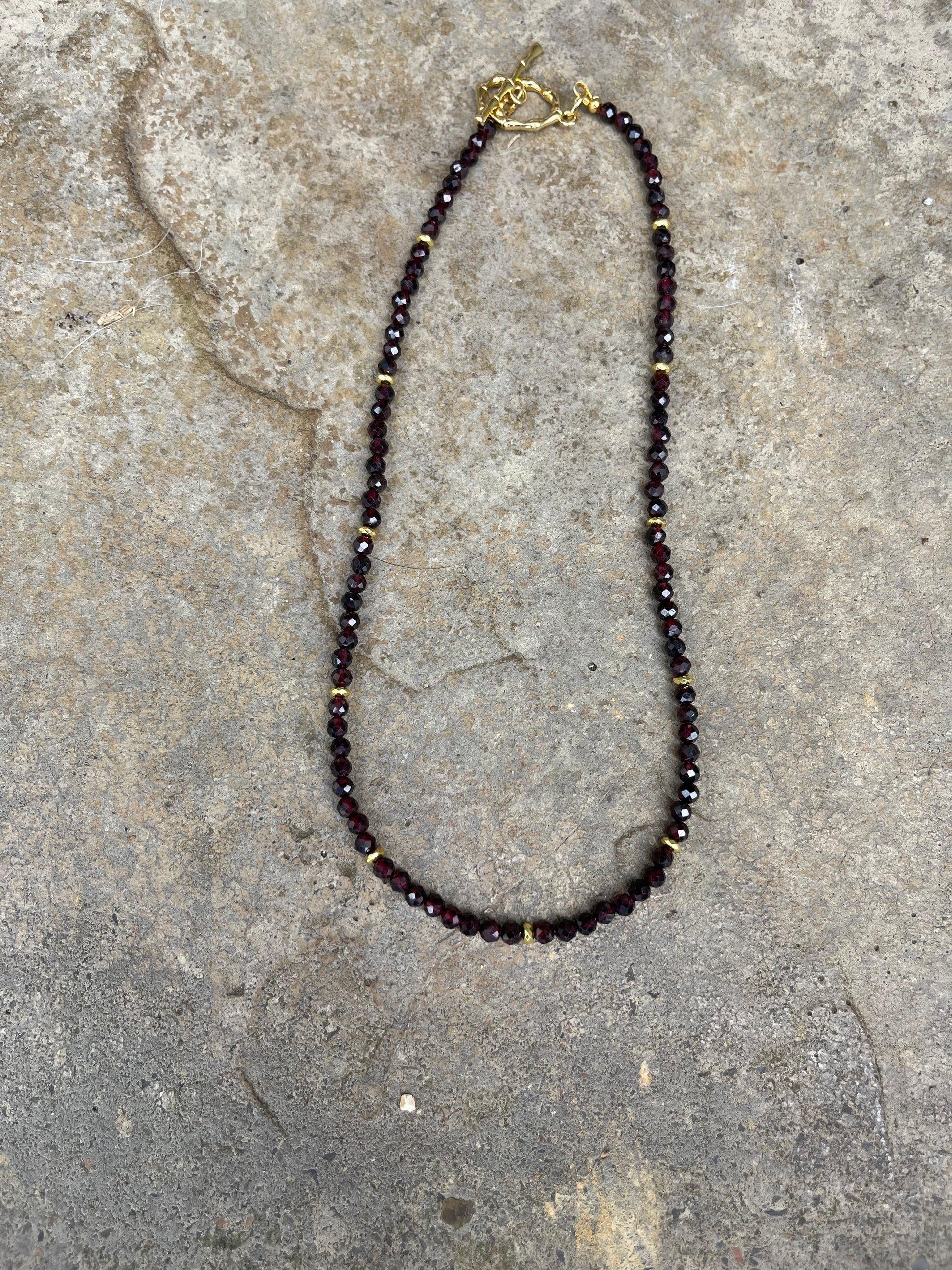 High quality 4mm garnet beads paired with 18k gold hematite beads with a beautiful gold plated toggle.