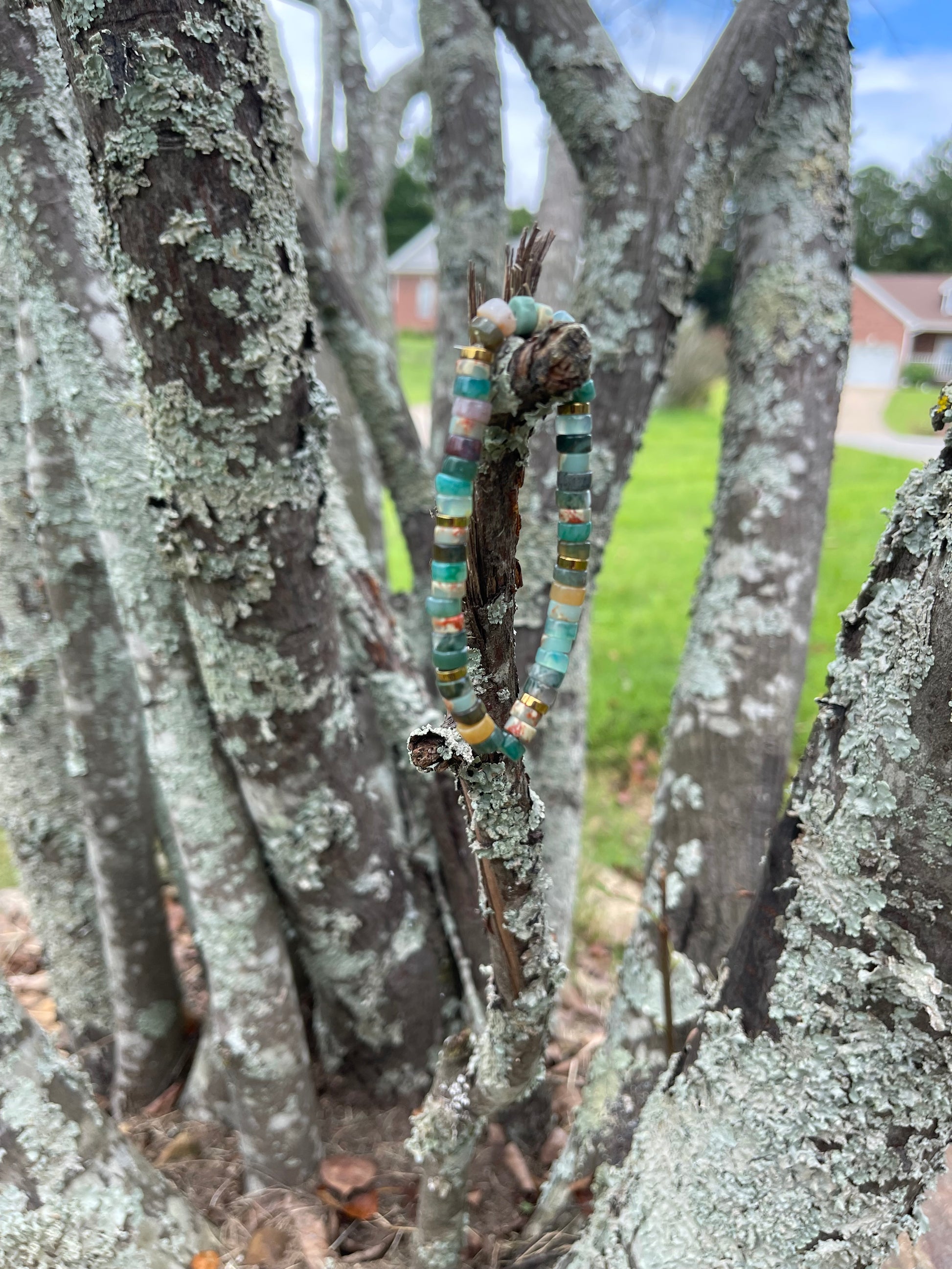 Gemstone bracelets are super fun and come in a variety of colors! From earth tones to bright bold colors I can make your vision come to light! Currently I have 2 earth tone stretch gemstone bracelets and 1 stretchy multicolored bracelet.